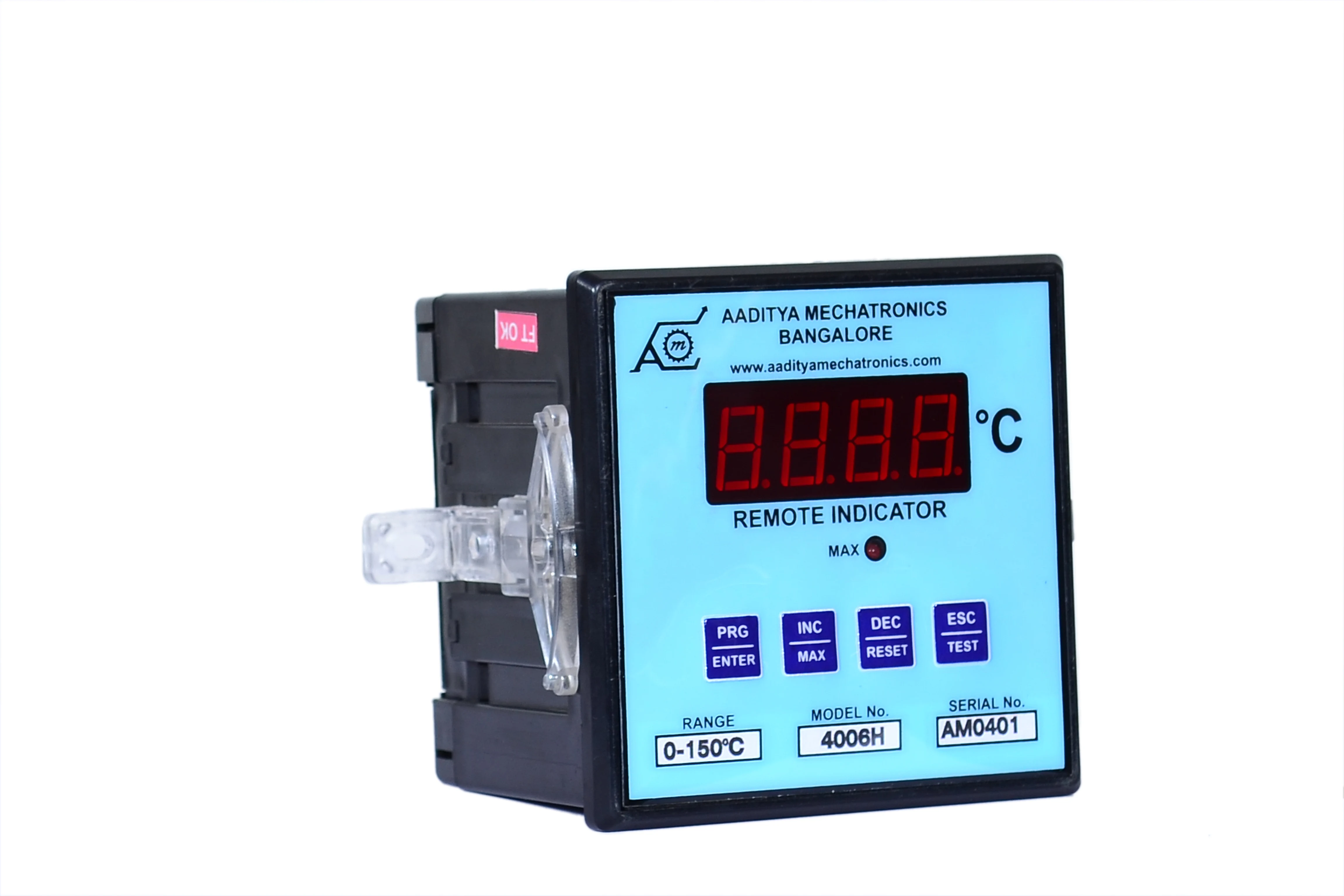 Remote indicator is used to indicate temperature of the transformer. This system is electrically isolated from input power supply. The DC Current 4-20mA is injected to microcontroller and it display corresponding Temperature accordingly.