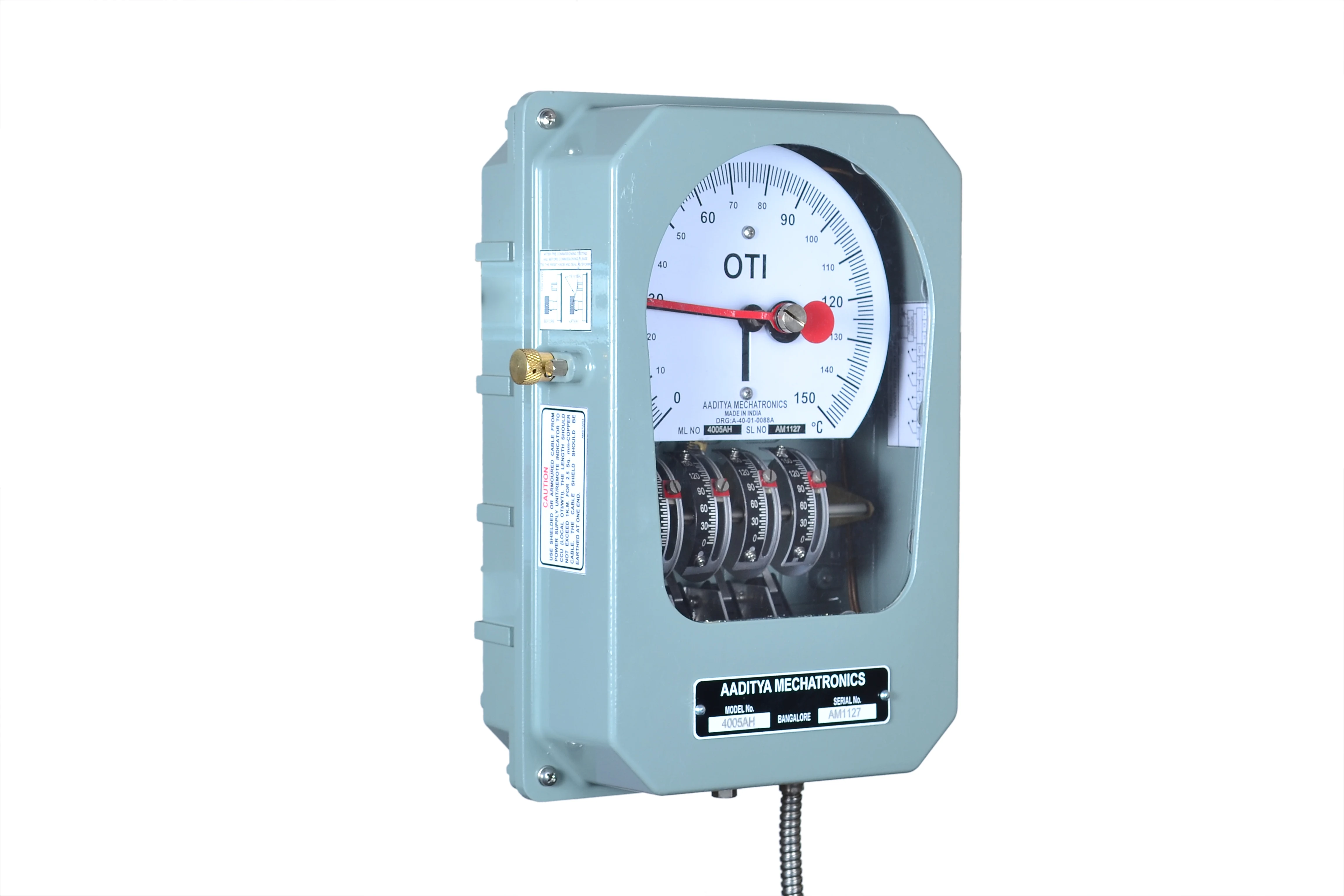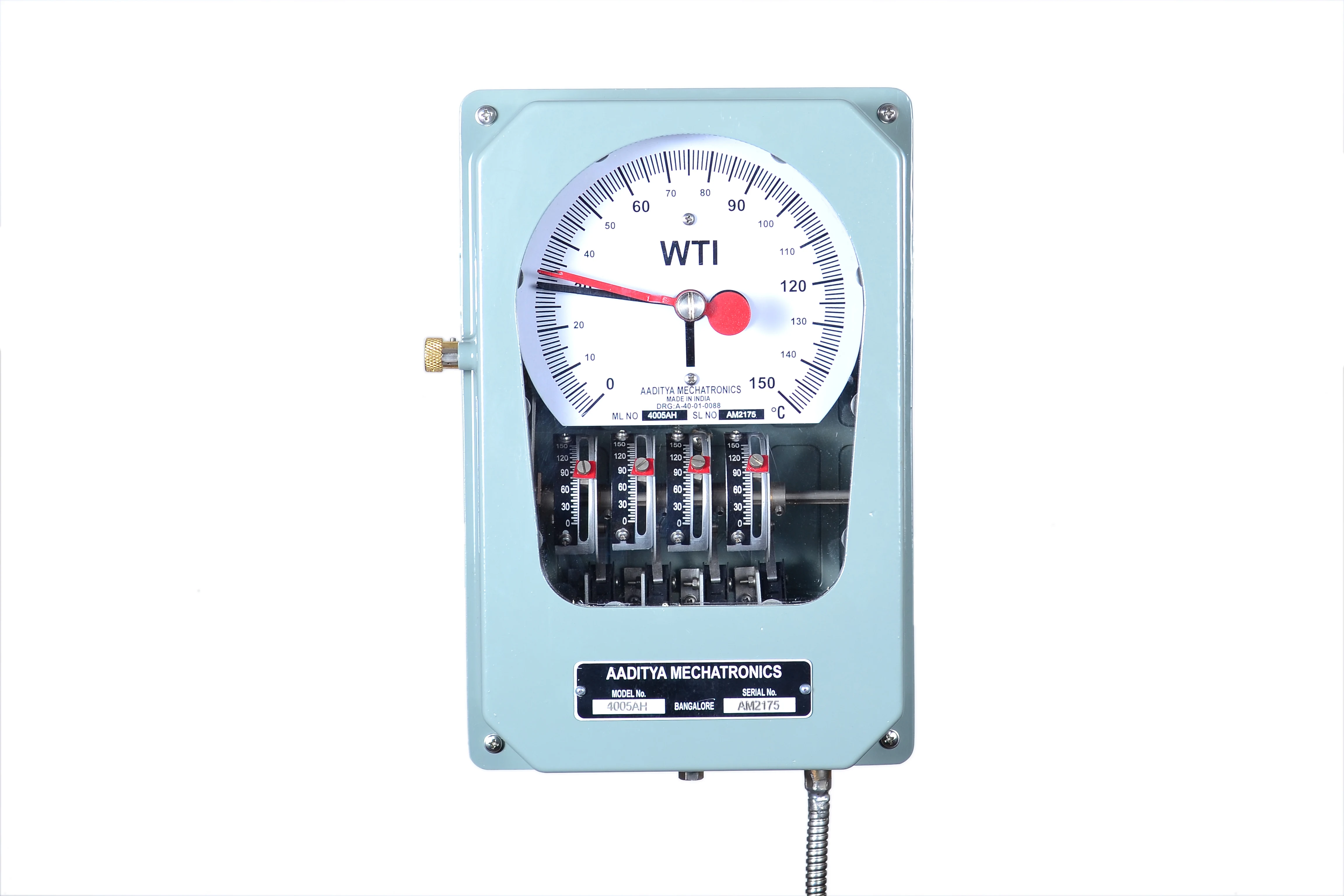 Dial type thermometers are developed to Measure, Indicate, and control the temperature of a particular application, such as for all power and distribution transformers, Generators, Bearing temperature monitoring etc.… Dial type thermometers consists of Bulb assembly, capillary and Expansion bellows. These operates based on liquid expansion technology with accuracy levels up to +/- 1% FSD. Instruments offer optional hybrid upgrades that incorporate embedded PT100 Sensor, enabling real-time temperature transmission for remote monitoring and SCADA systems