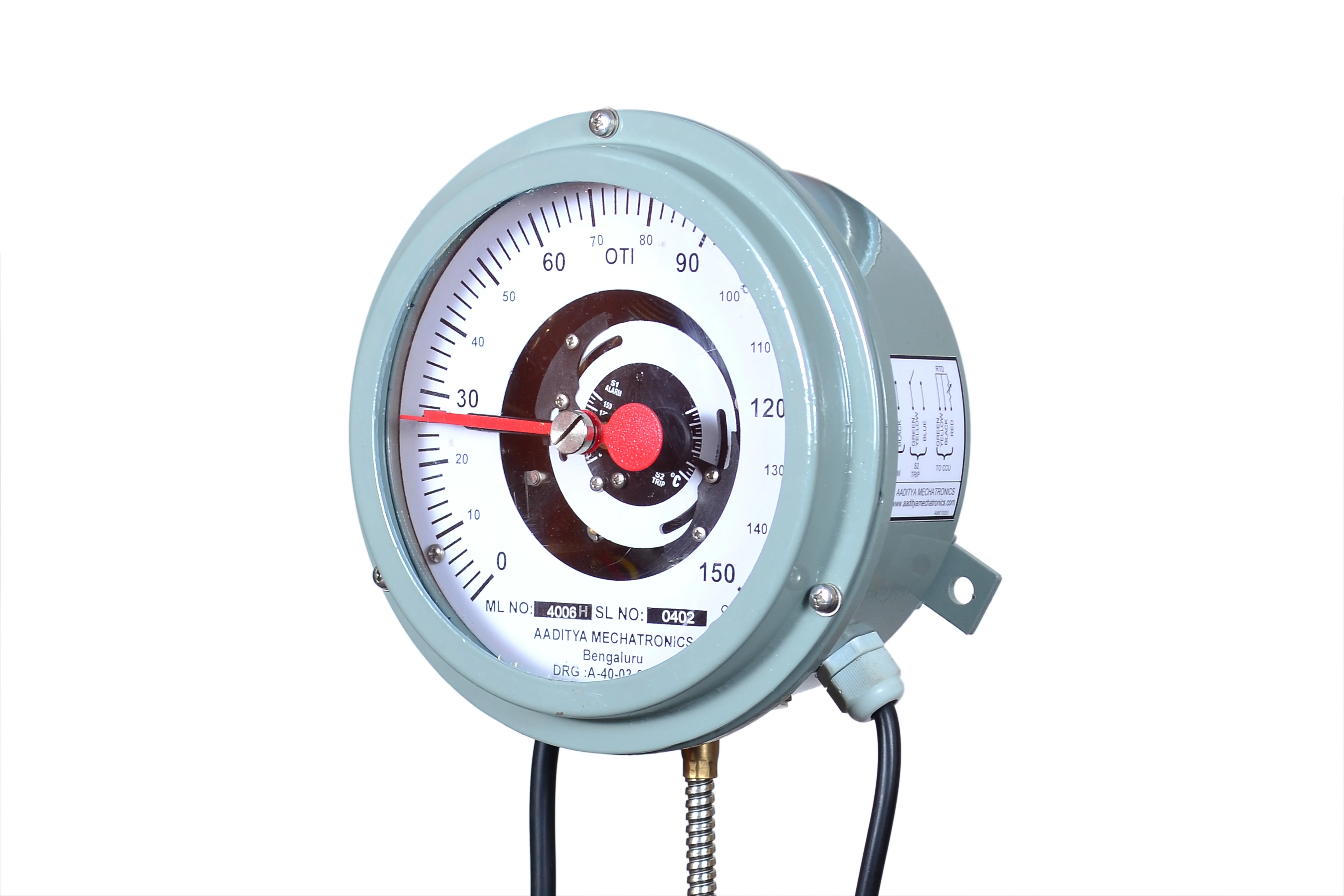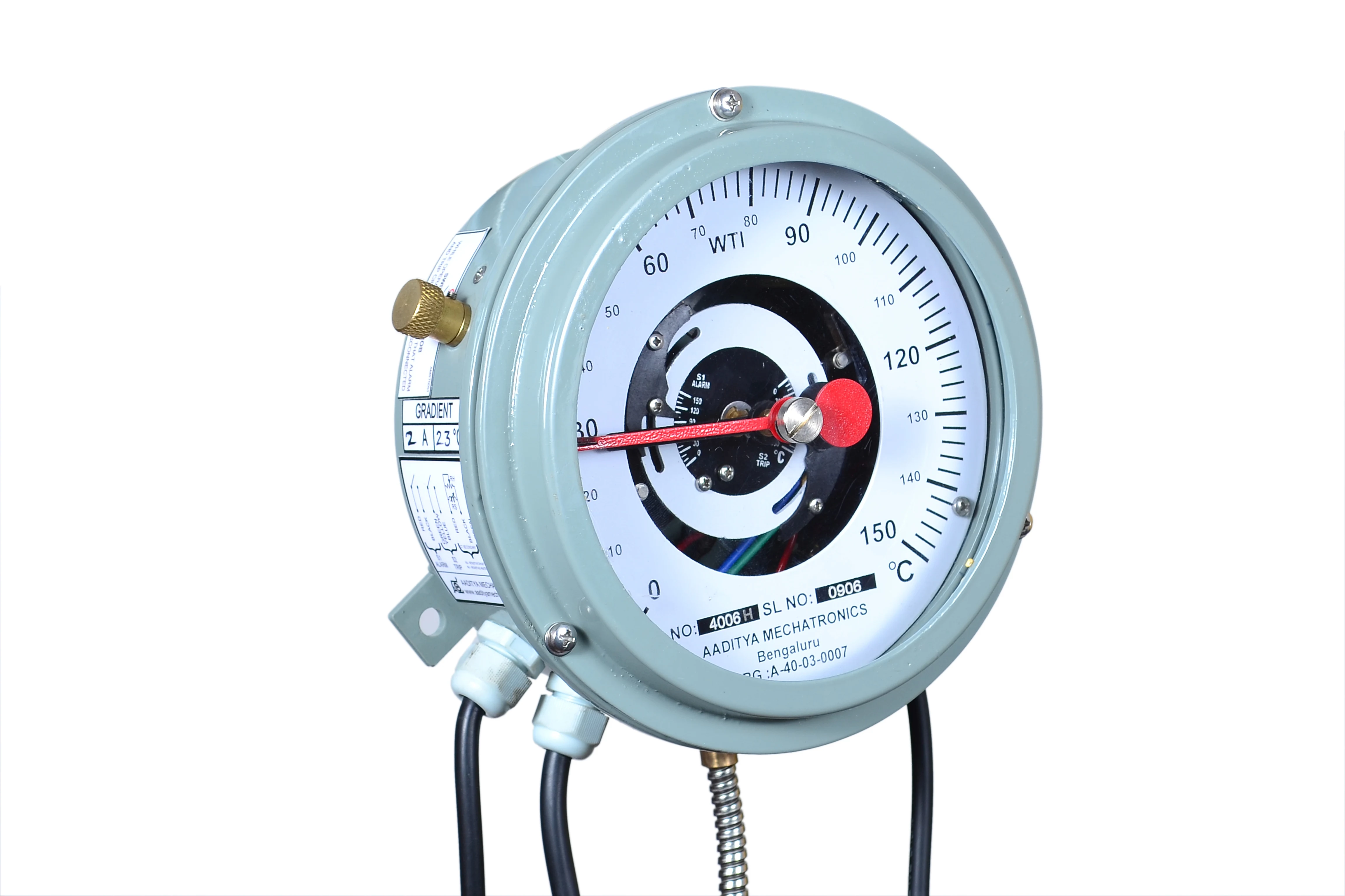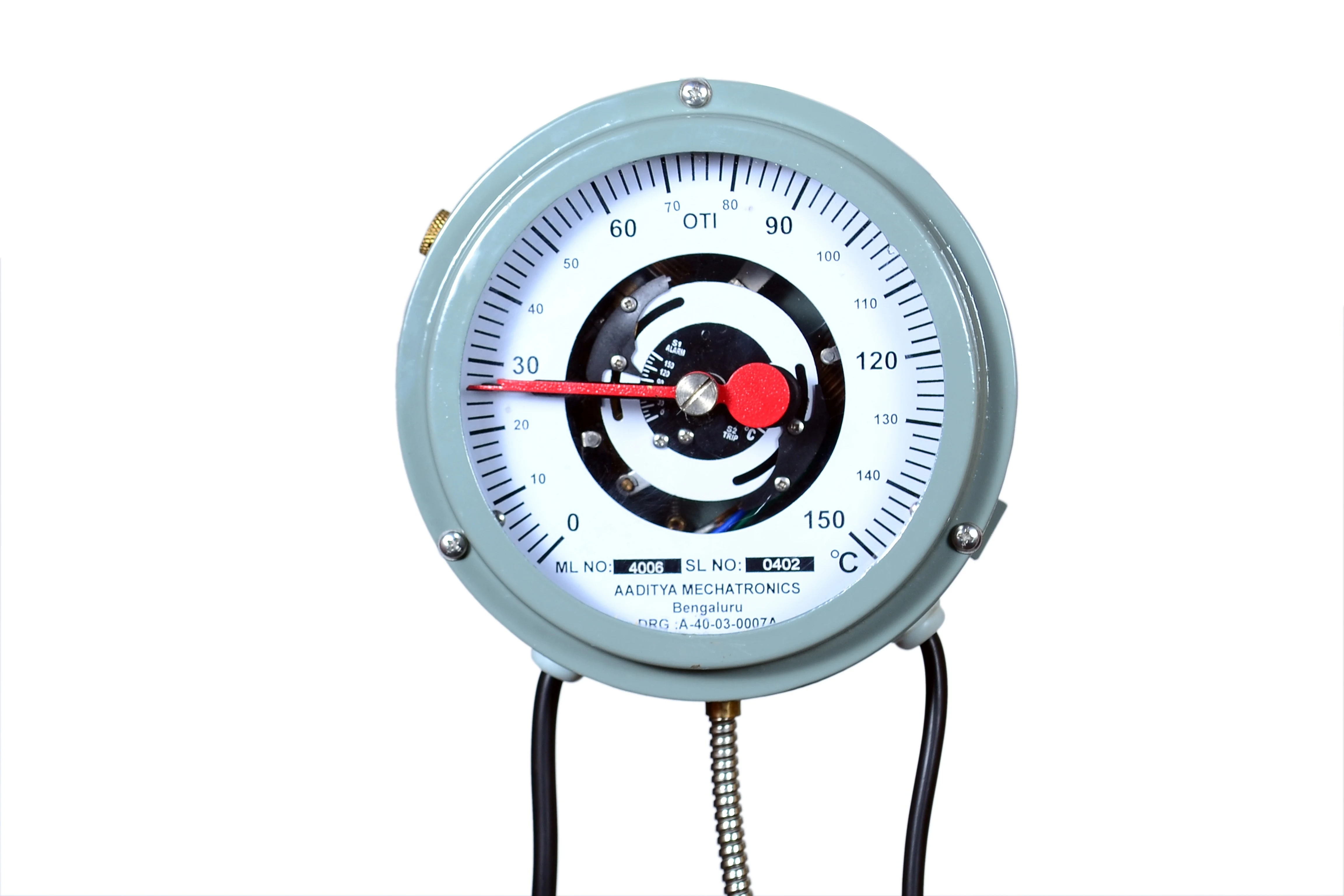 Dial type thermometers are developed to Measure, Indicate, and control the temperature of a particular application, such as for all power and distribution transformers, Generators, Bearing temperature monitoring etc.… Dial type thermometers consists of Bulb assembly, capillary and Expansion bellows. These operates based on liquid expansion technology with accuracy levels up to +/- 1% FSD. Instruments offer optional hybrid upgrades that incorporate embedded PT100 Sensor, enabling real-time temperature transmission for remote monitoring and SCADA systems