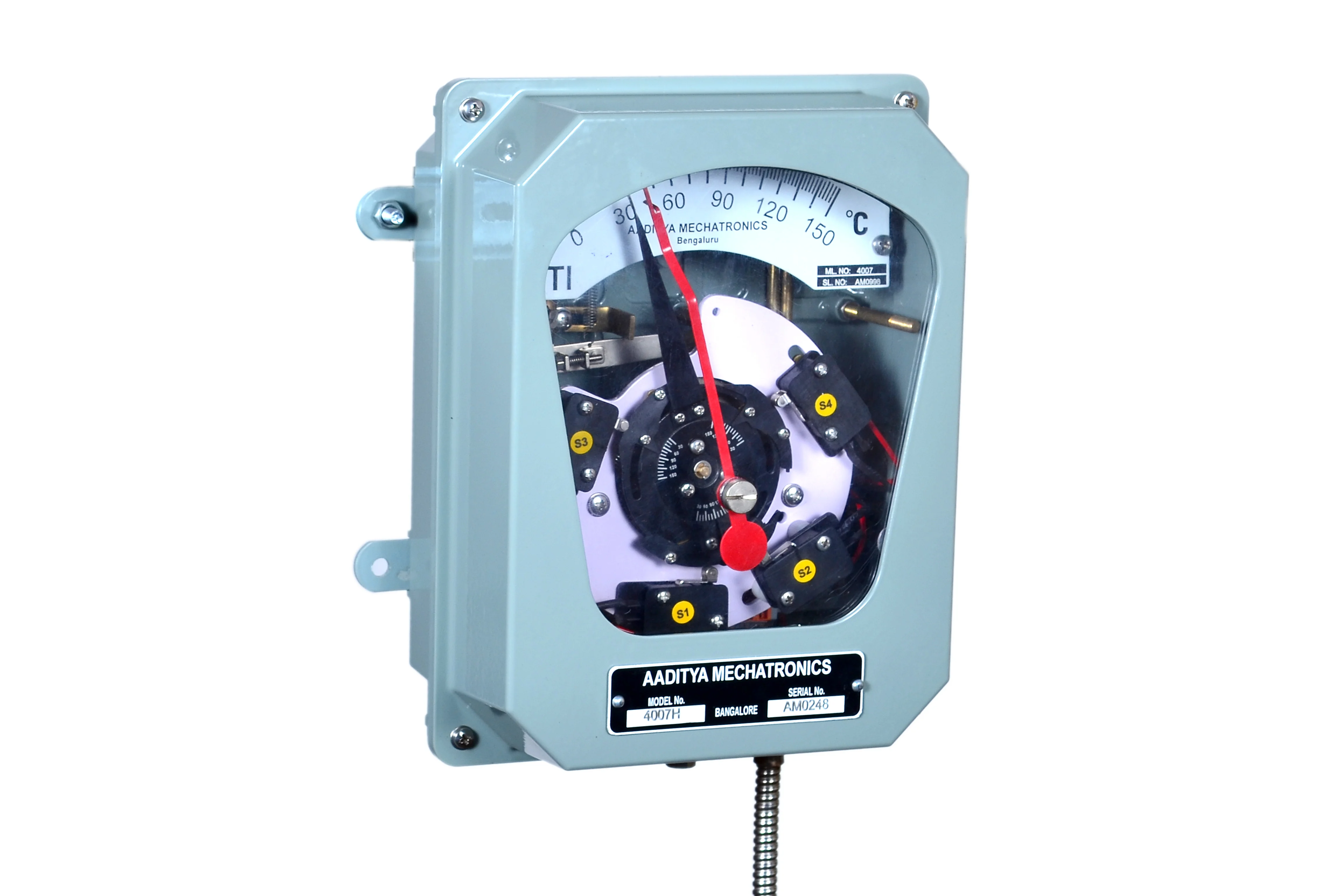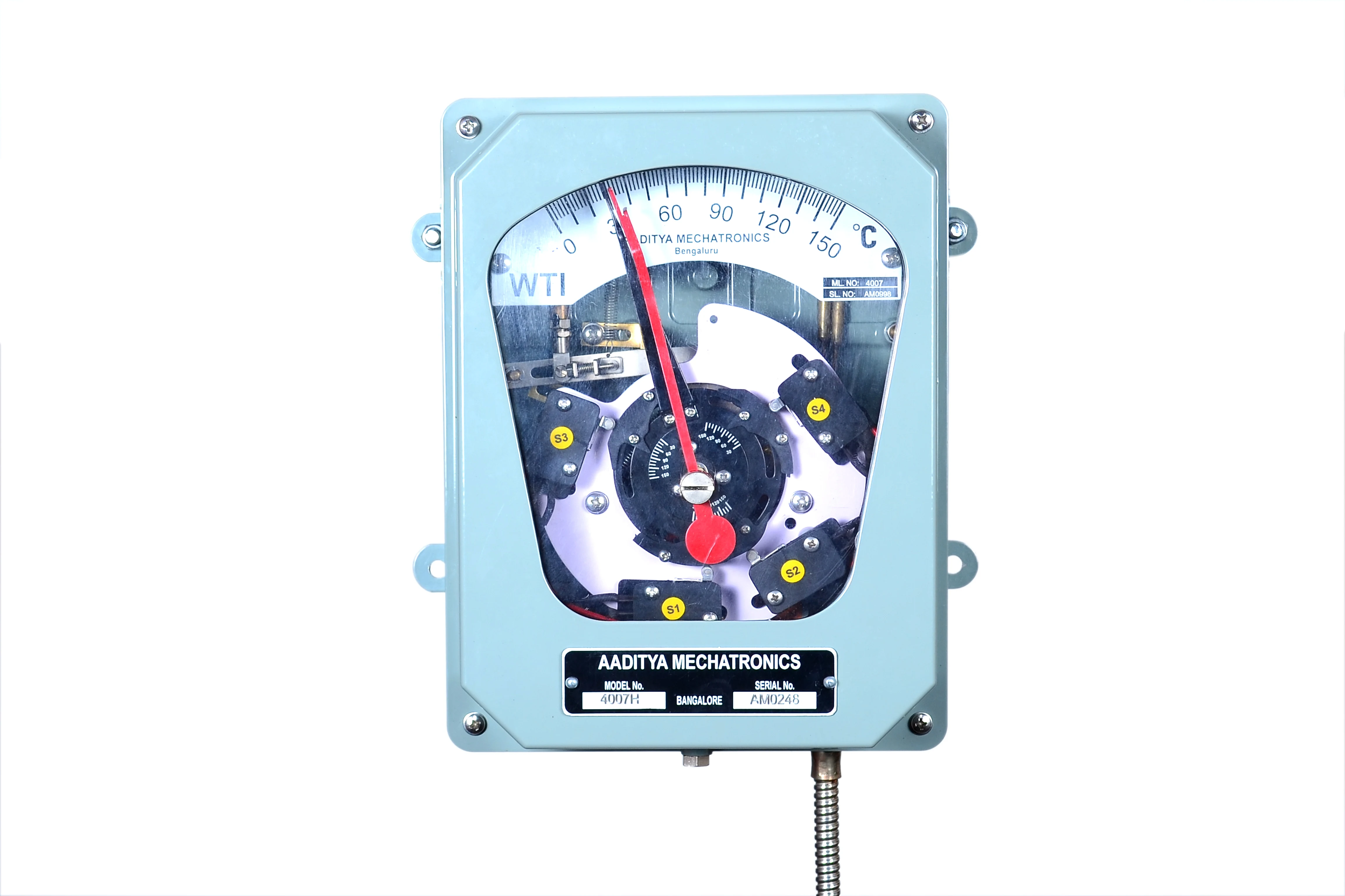 Dial type thermometers are developed to Measure, Indicate, and control the temperature of a particular application, such as for all power and distribution transformers, Generators, Bearing temperature monitoring etc.… Dial type thermometers consists of Bulb assembly, capillary and Expansion bellows. These operates based on liquid expansion technology with accuracy levels up to +/- 1% FSD. Instruments offer optional hybrid upgrades that incorporate embedded PT100 Sensor, enabling real-time temperature transmission for remote monitoring and SCADA systems